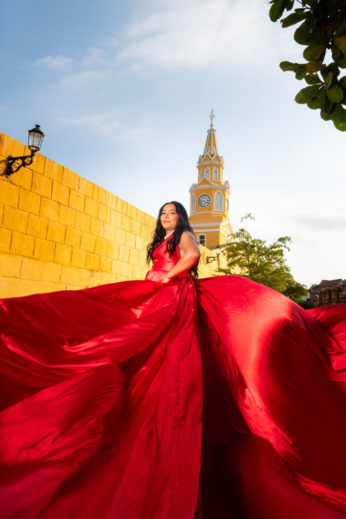 A flying dress photoshoot in Cartagena turns that celebration into something you can relive forever.